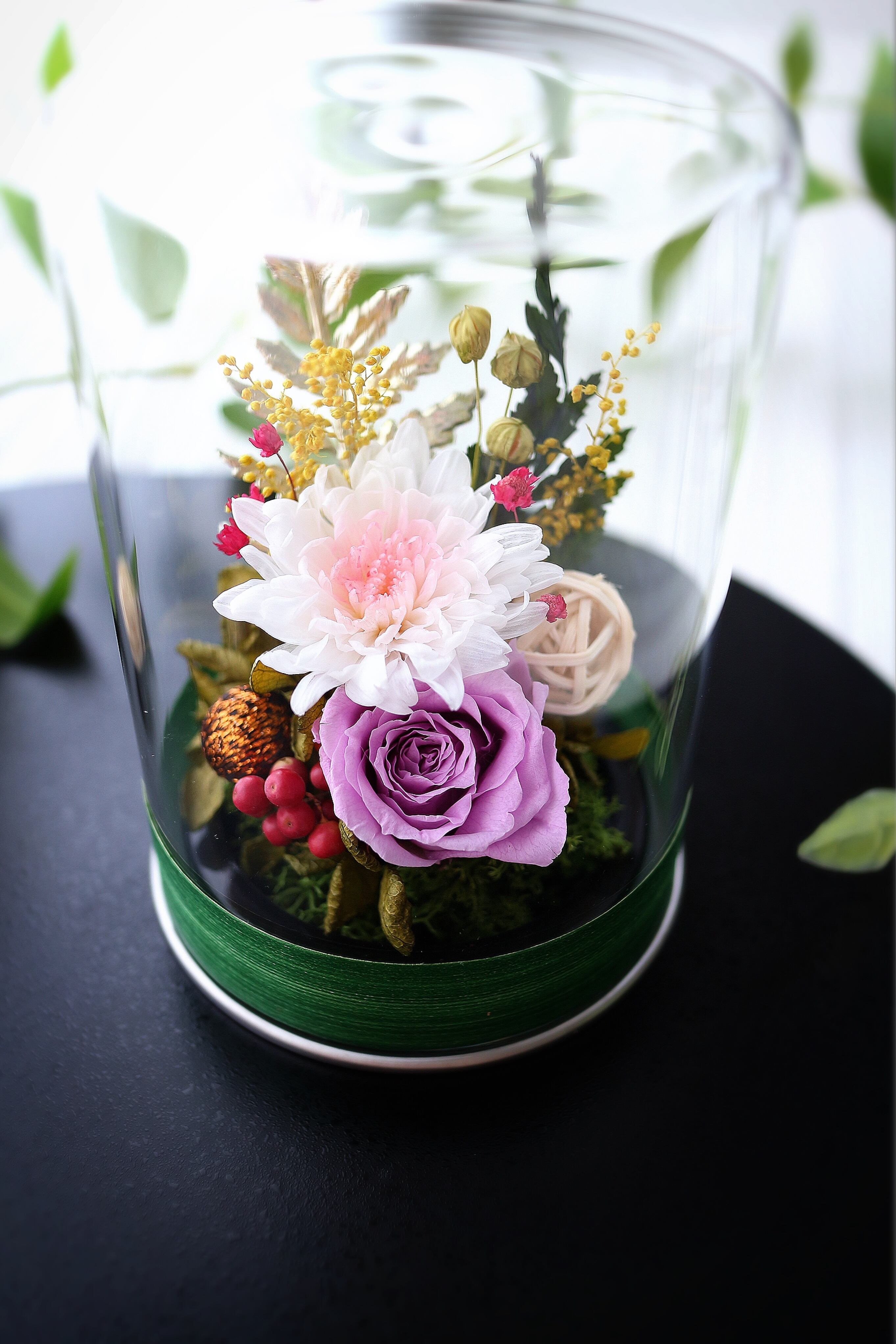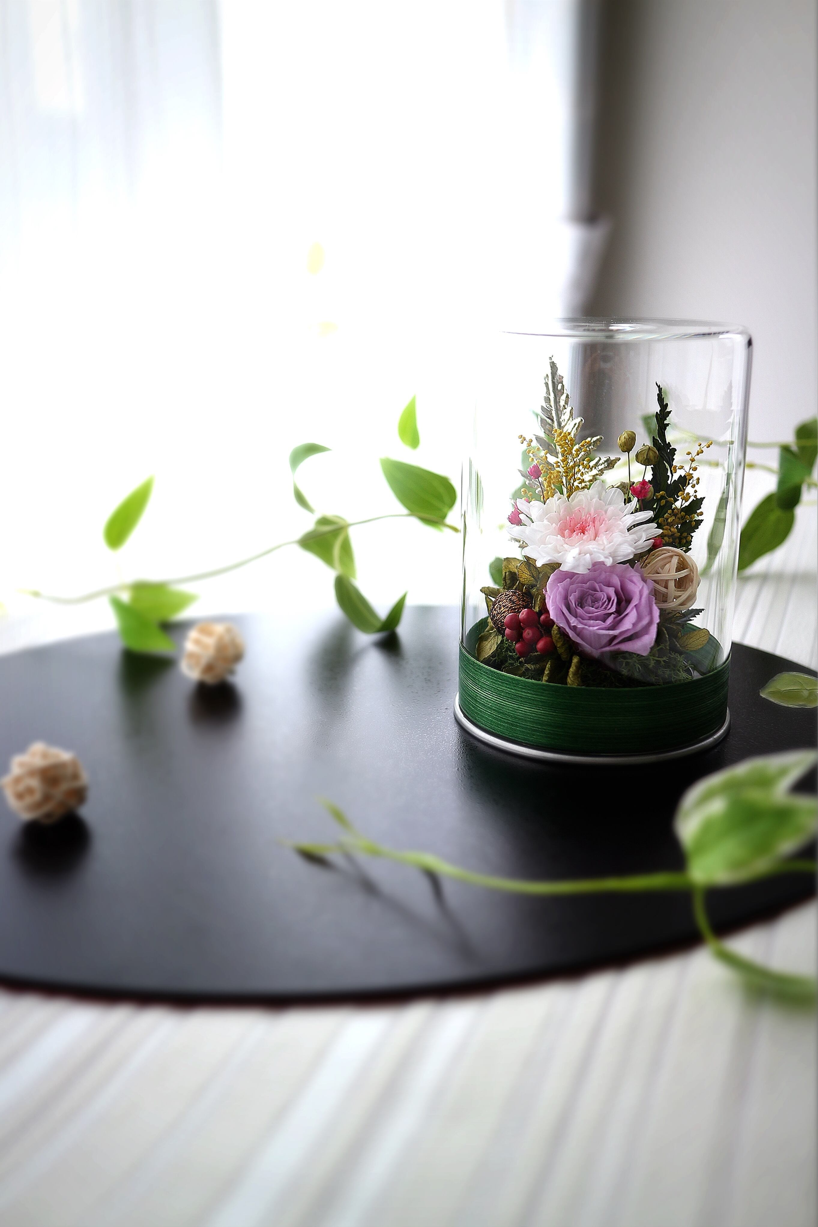 プリザーブドフラワー / アートフラワー / お仏花 / 送別ギフト / 母の日プレゼント / 結婚祝い / 出産祝い / 新築祝い / 誕生日 / 両親へのプレゼント / 透明感のあるインテリア / 菊 / フラワーギフト / 贈答品 / 特別な日の贈り物