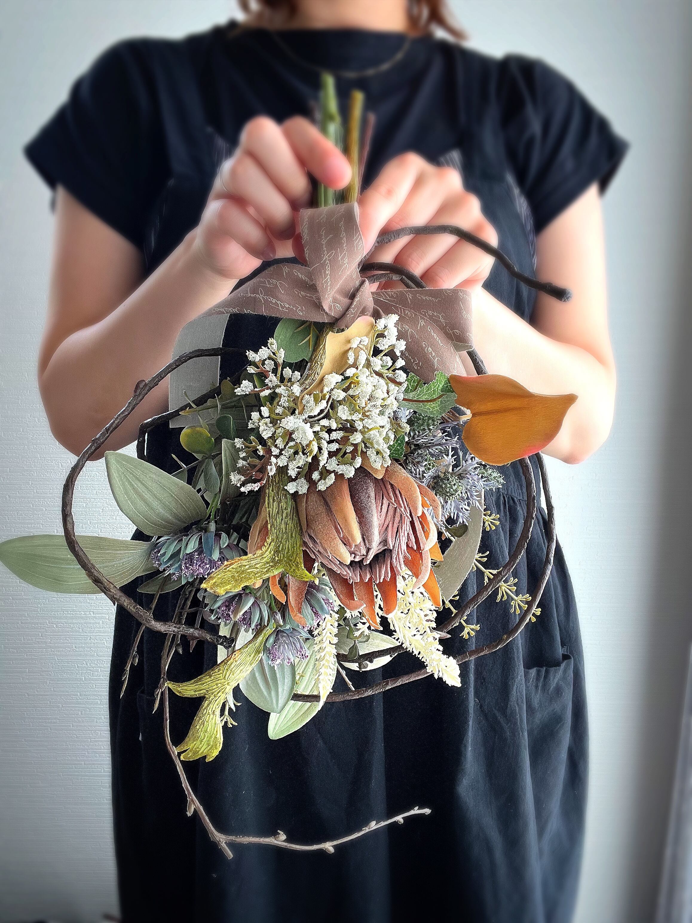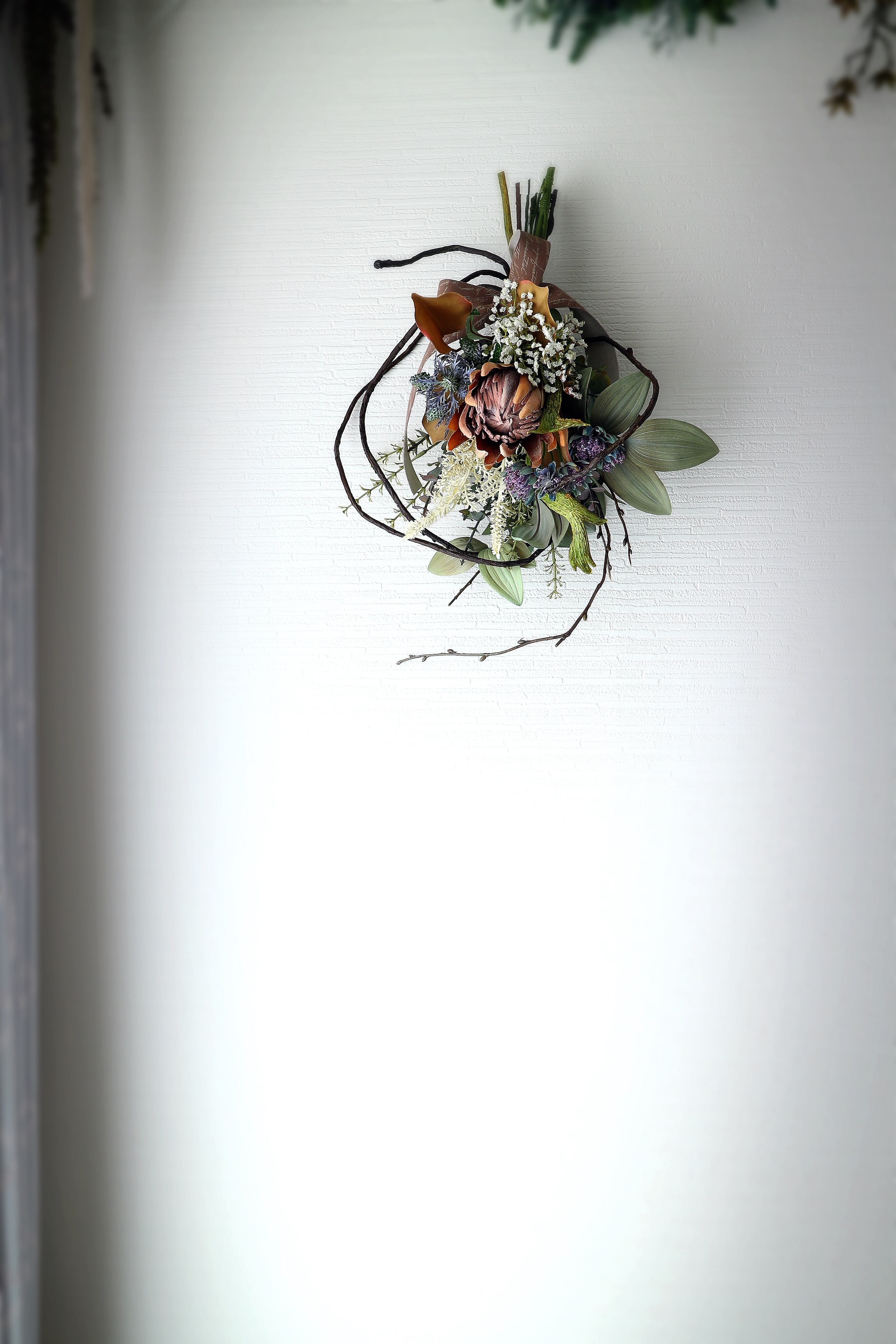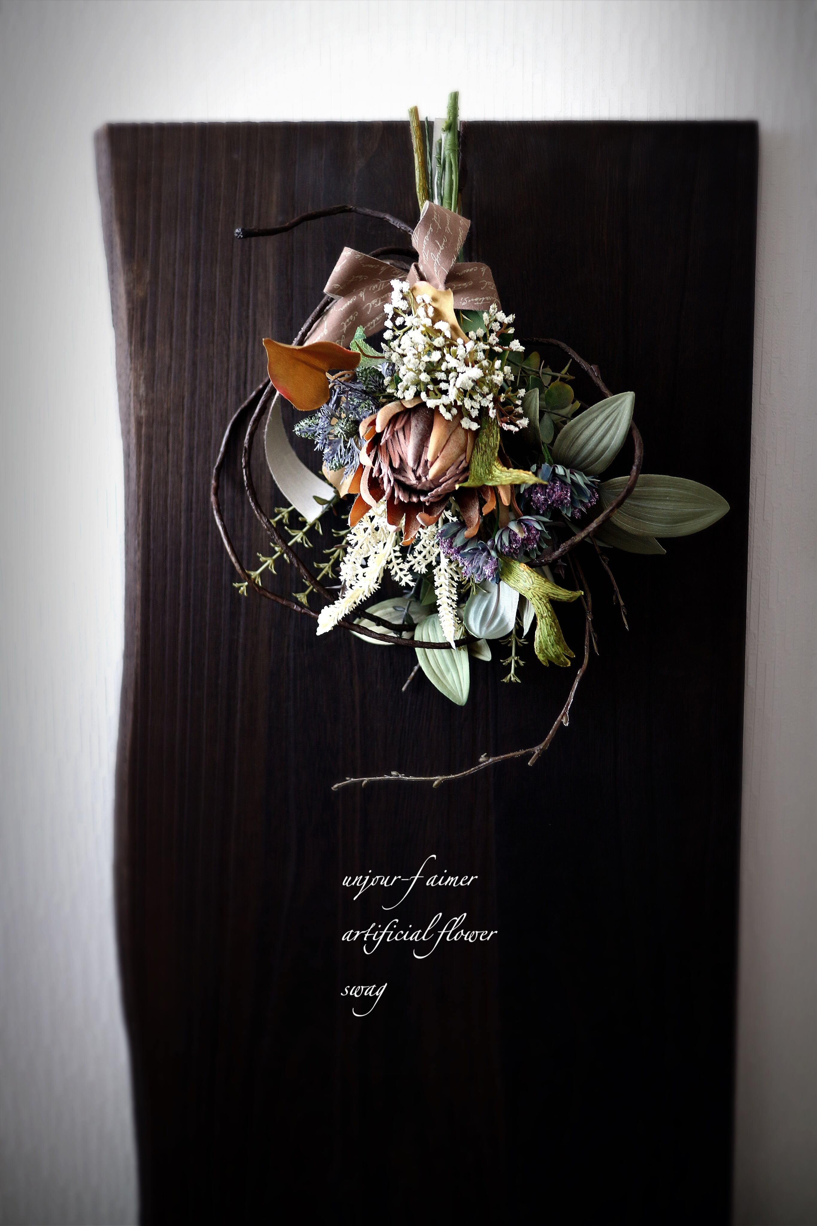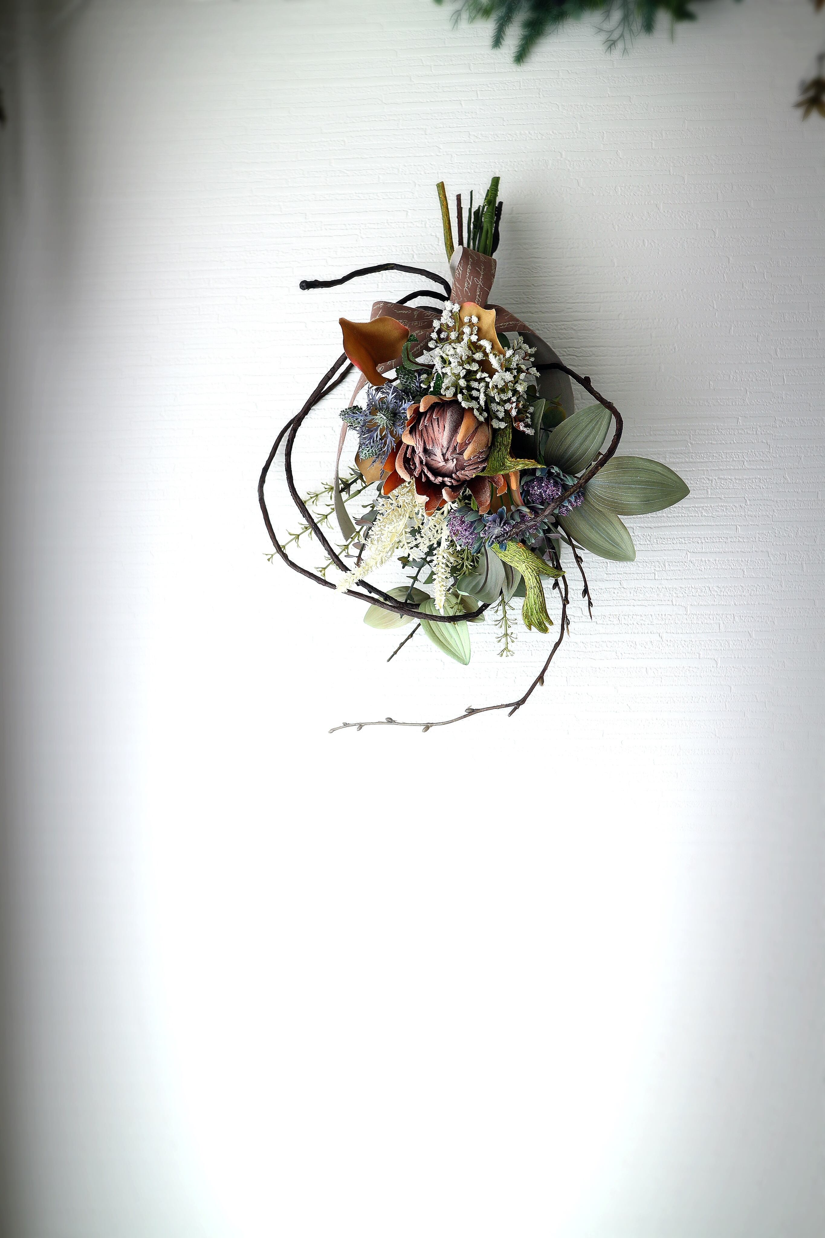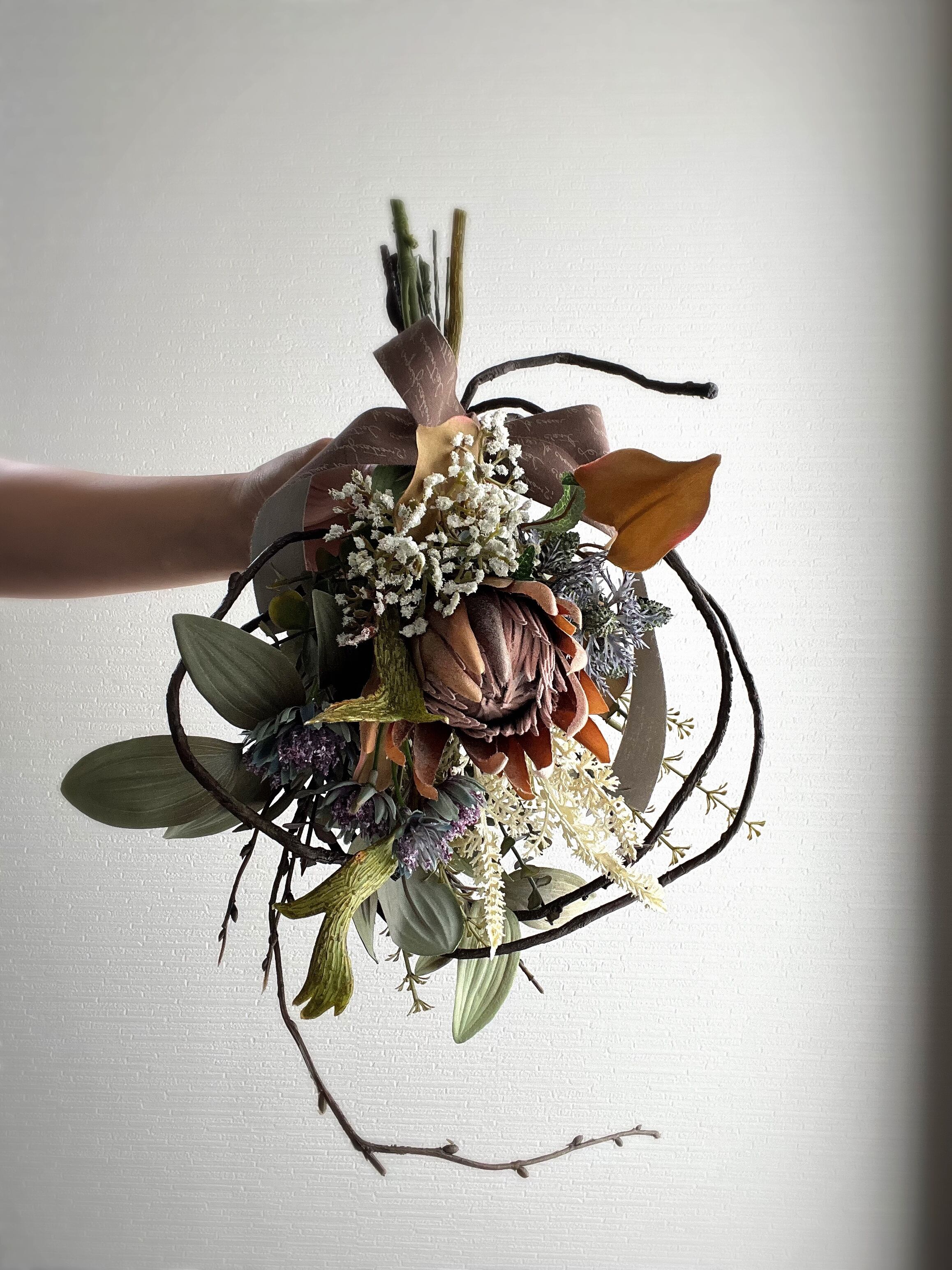 自立枝式プロテアSスワッグ 【アーティフィシャルフラワー】造花スワッグ 造花リース 造花花束 アートフラワー プロテアスワッグ プロテア花束 ニュアンスアレンジ 枝アレンジ 枝スワッグ 枝リース 秋リース 秋スワッグ 冬リース 冬スワッグ 玄関スワッグ 玄関リース