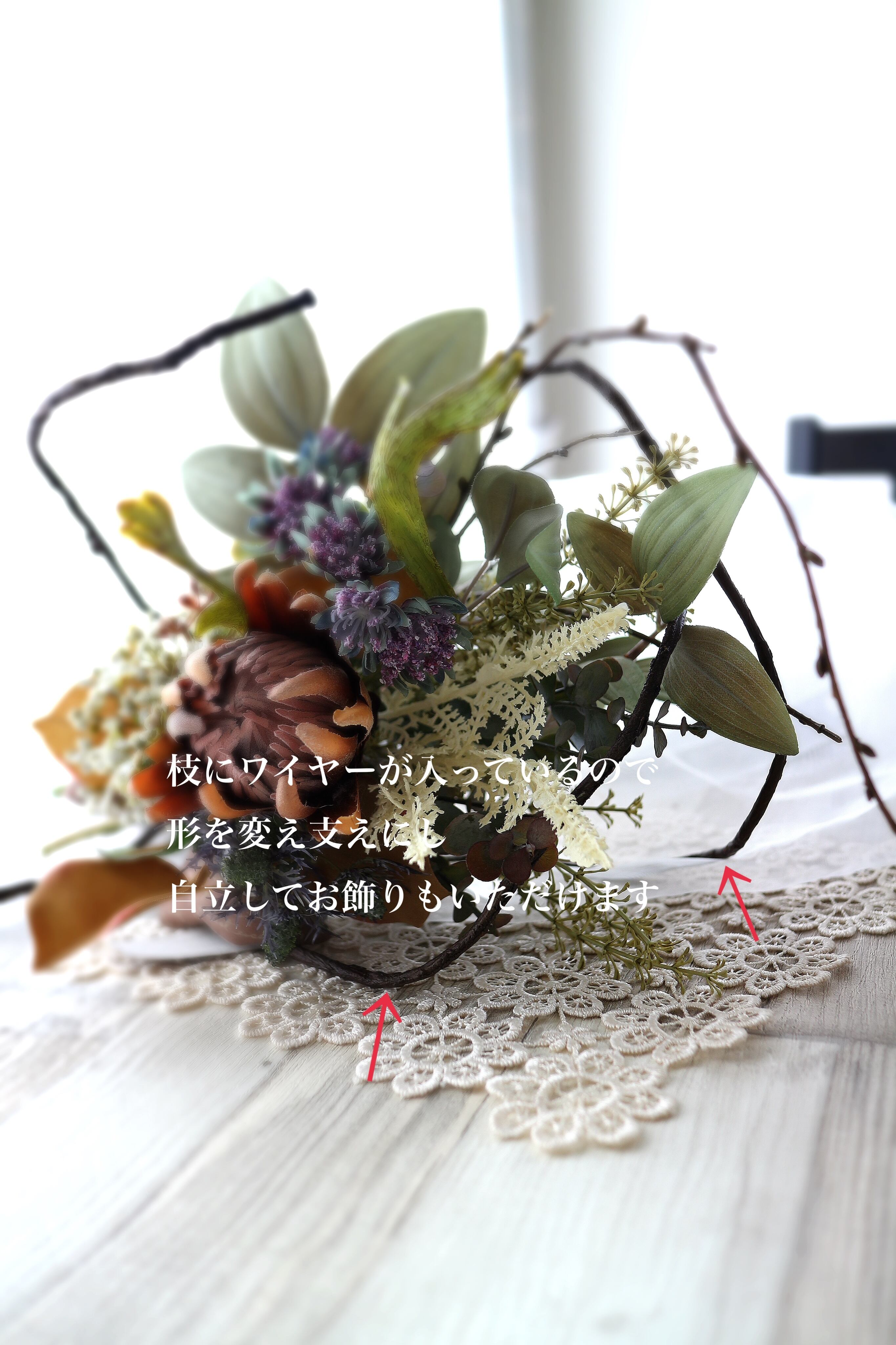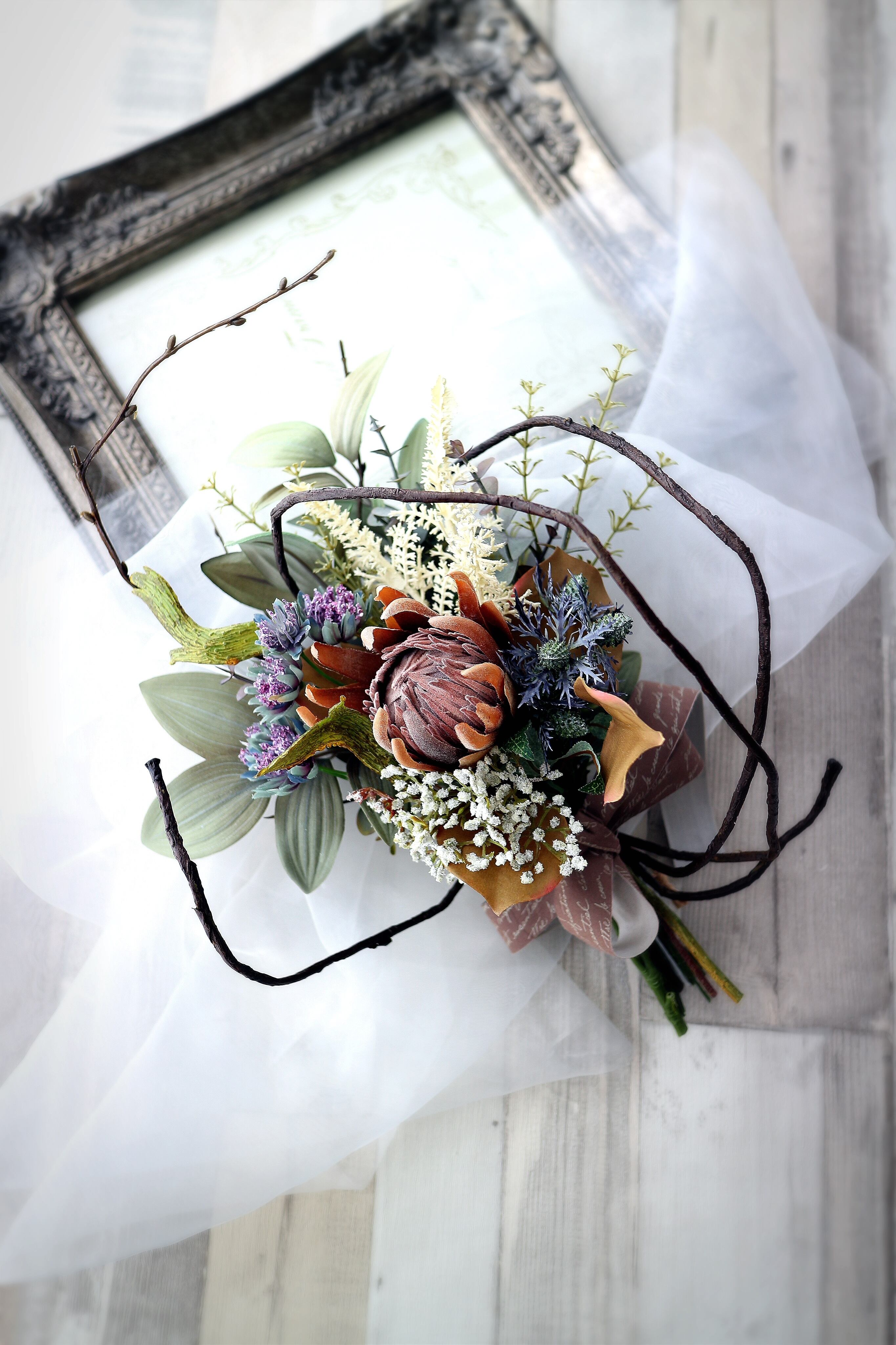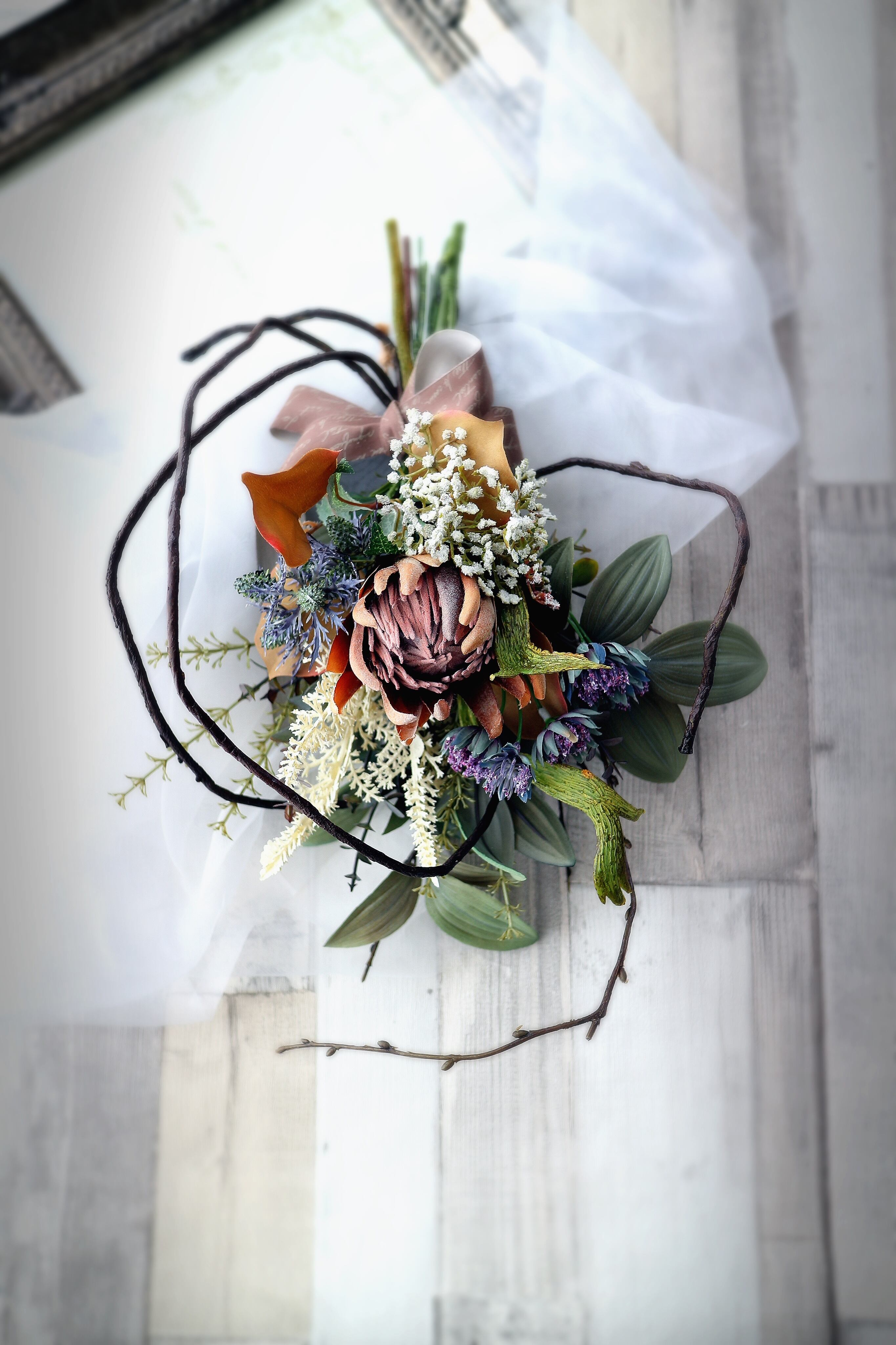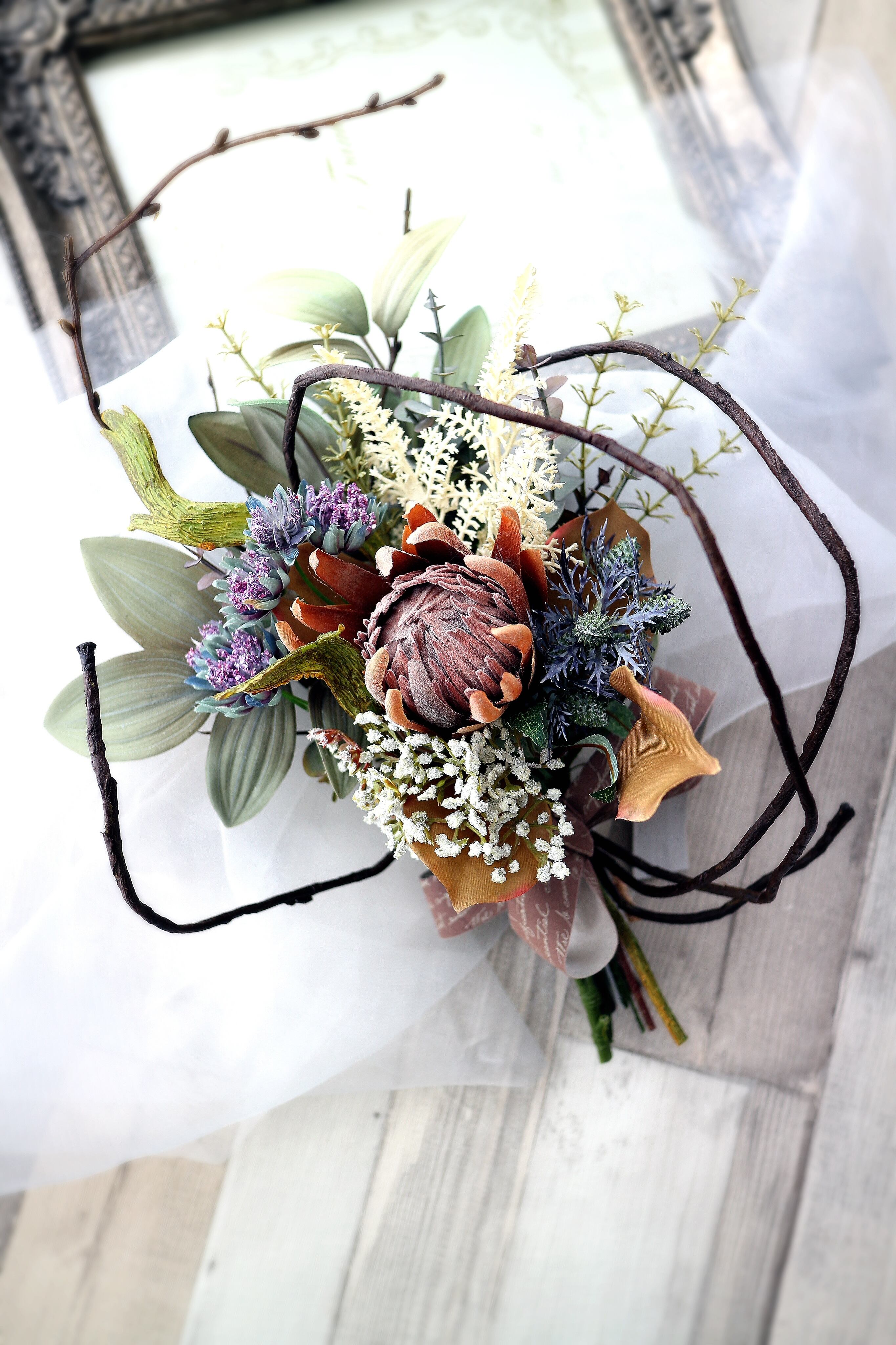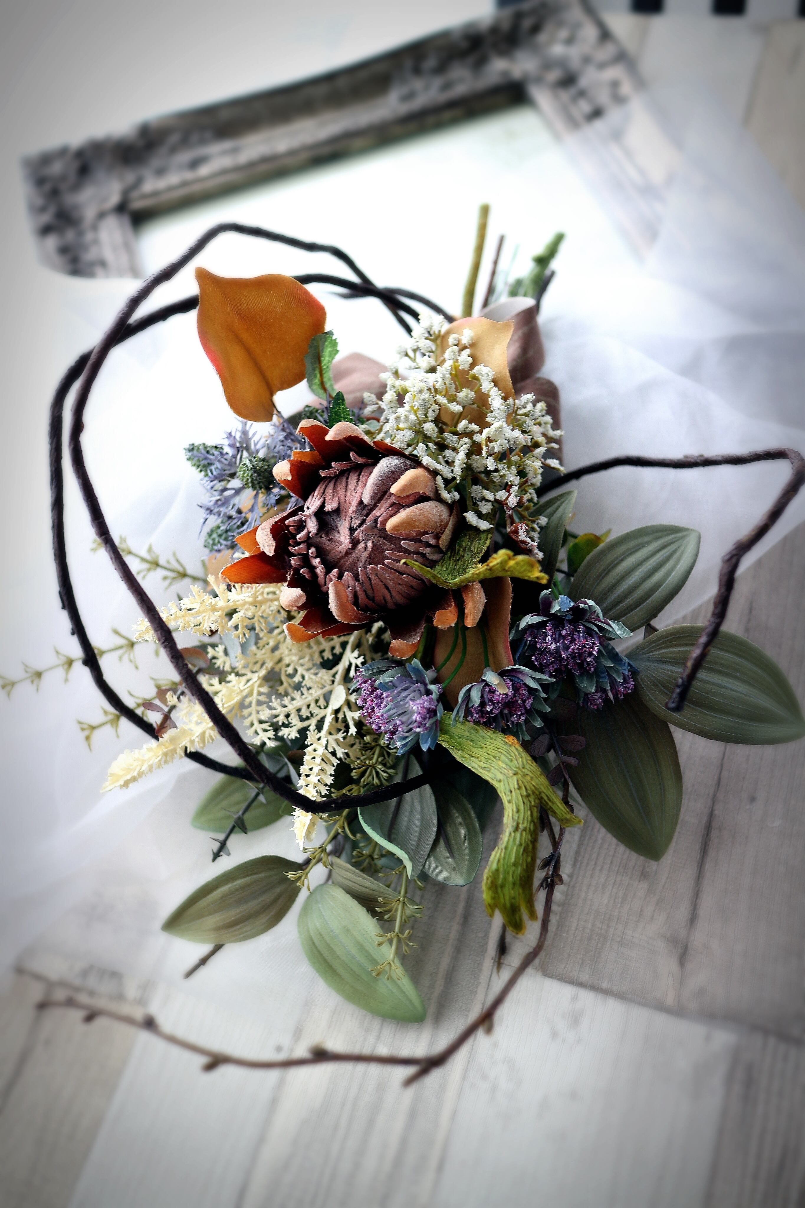自立枝式プロテアSスワッグ 【アーティフィシャルフラワー】造花スワッグ 造花リース 造花花束 アートフラワー プロテアスワッグ プロテア花束 ニュアンスアレンジ 枝アレンジ 枝スワッグ 枝リース 秋リース 秋スワッグ 冬リース 冬スワッグ 玄関スワッグ 玄関リース