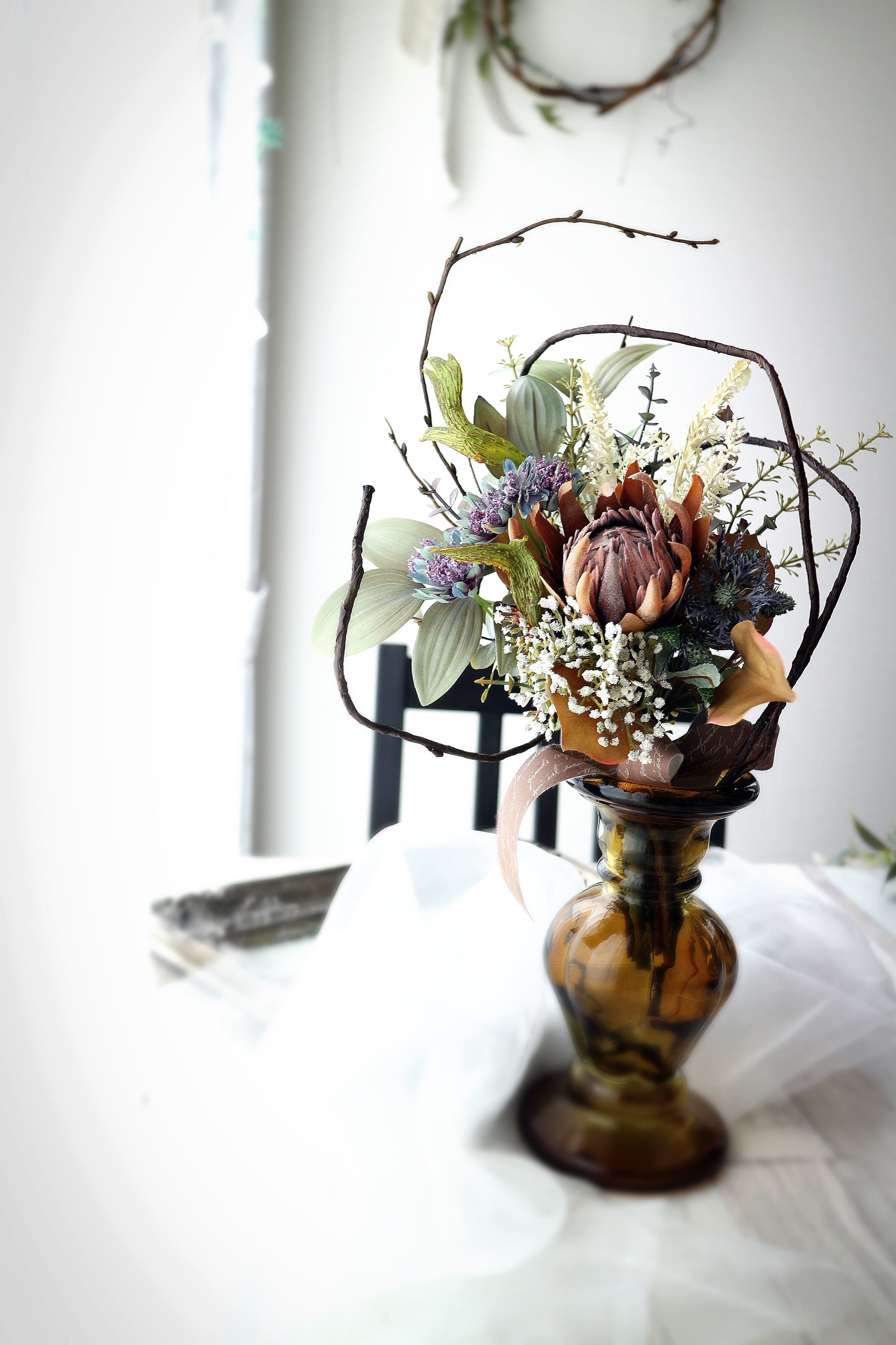 Sサイズのプロテアをメインに使用した自立式スワッグ❁⃘*.゚